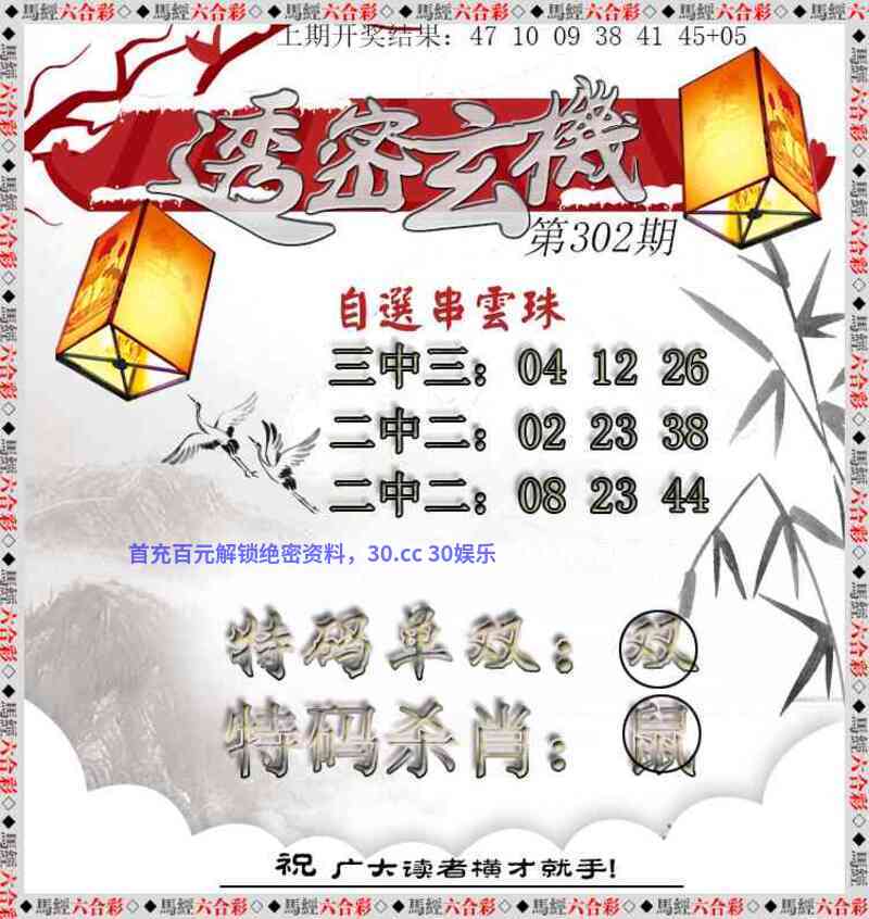 304期平特:【羊】 304期二连:【羊鼠】【虎鸡】 304期三连:【羊鼠猪】【虎鸡狗】 |