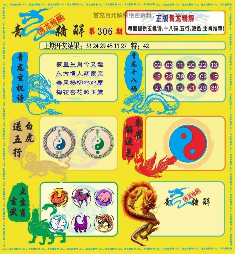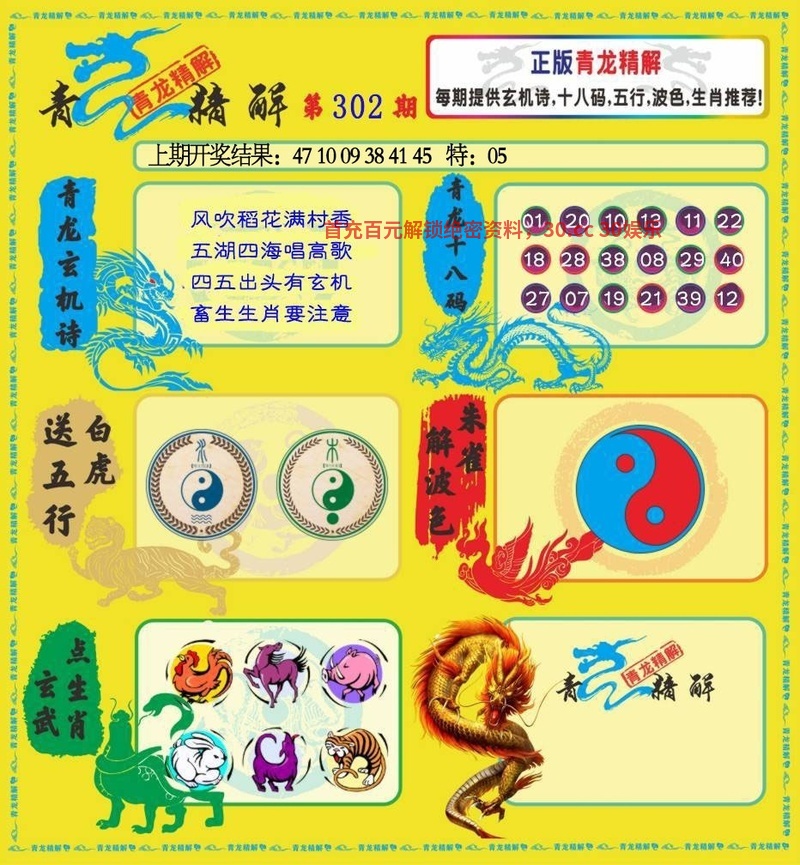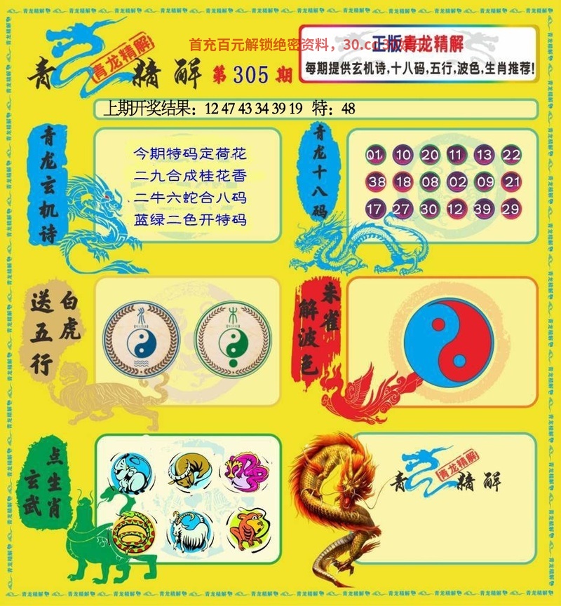 301期平特:【狗】 301期二连:【狗羊】【龙猪】 301期三连:【狗羊蛇】【龙猪马】 |